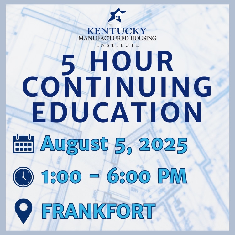 In conjunction with the Department of Housing, Buildings, and Construction, this course is designed to serve as a refresher course for individuals in the manufactured housing industry who are in need of re-certification with DHBC. Facilitated by Logan Hanes and/or DHBC personnel, individuals attending this course will receive the most up-to-date instruction on various aspects of the required manufactured home set-up and installation. Additionally, the course will cover recent regulatory changes.