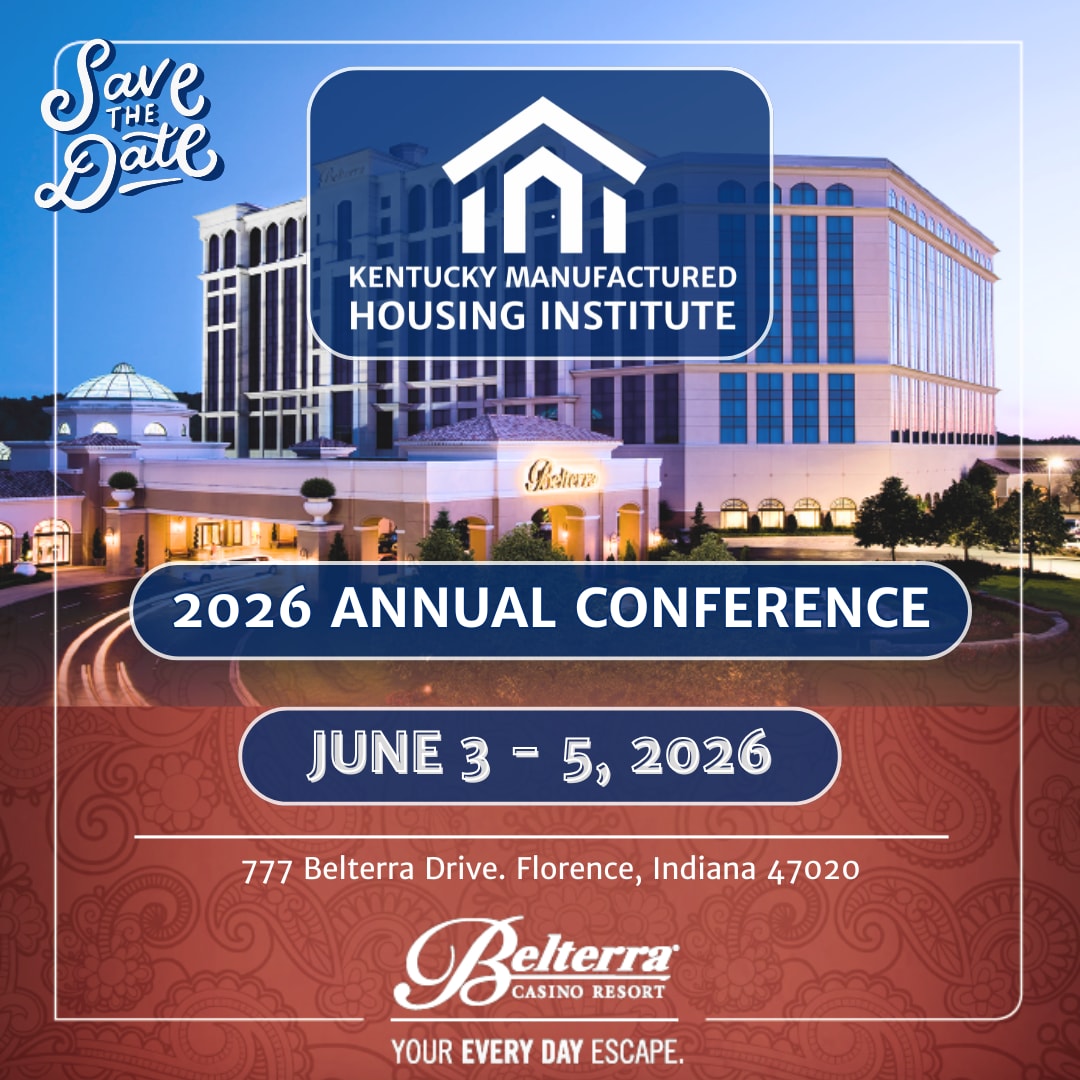 The Kentucky Manufactured Housing Institute is excited to announce its Annual Conference, which will be held from June 3, 2026, through June 5, 2026, at the beautiful Belterra Casino Resort. This event is exclusively for our valued members.