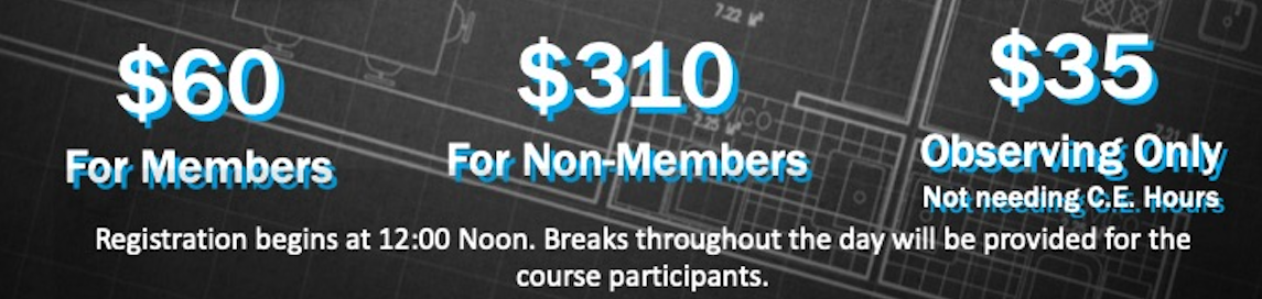 Registration begins at 12:00 Noon. The class begins at 1:00. Breaks throughout the day will be provided for the for the course participants.