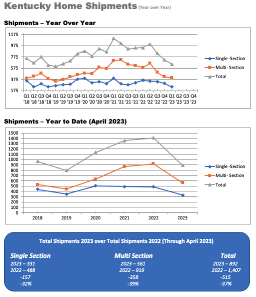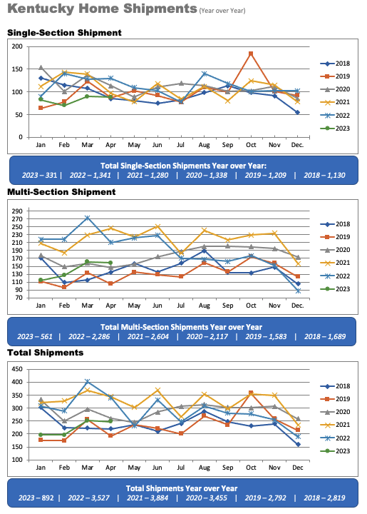 Cumulative shipments through April this year totaled 27,816 homes compared with 39,821 homes for the same four months of 2022, a net decrease of 30.1 percent.