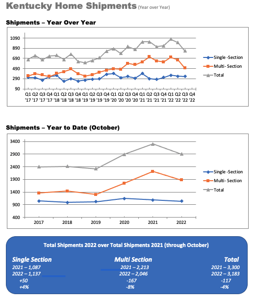 Cumulative shipments from January through October this year totaled 98,456 homes compared with 88,685 homes for the same ten months of 2021, a net increase of 11.0 percent.