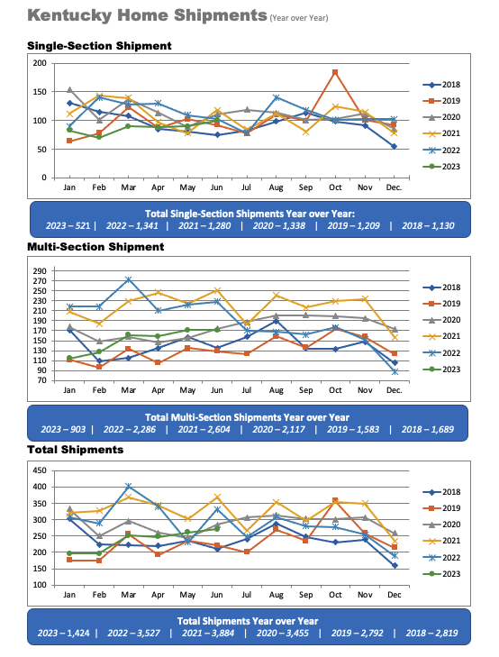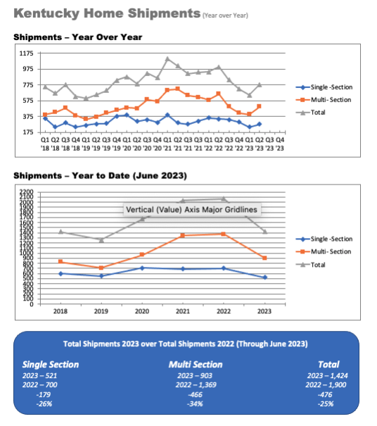 Cumulative shipments through June this year totaled 43,893 homes compared with 61,650 homes for the first six months of 2022, a net decrease of 28.8 percent.